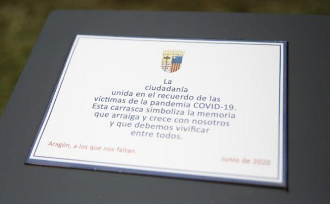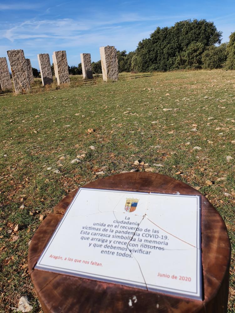 El acto llevó el nombre de “A los que nos faltan” y comenzó con la plantación de la carrasca, símbolo de la identidad de Aragón, una especie abundante en todos los territorios de España con el que se pretende manifestar la solidaridad, afecto, hermandad y causa común. A continuación se instaló una placa de cerámica elaborada en el Taller-Escuela de Muel y finalmente se procedió a la lectura de un texto de Manuel Vilas, premio de las Letras Aragonesas.